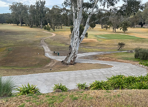 Provides a permeable, flexible alternative to concrete or asphalt in many applications.