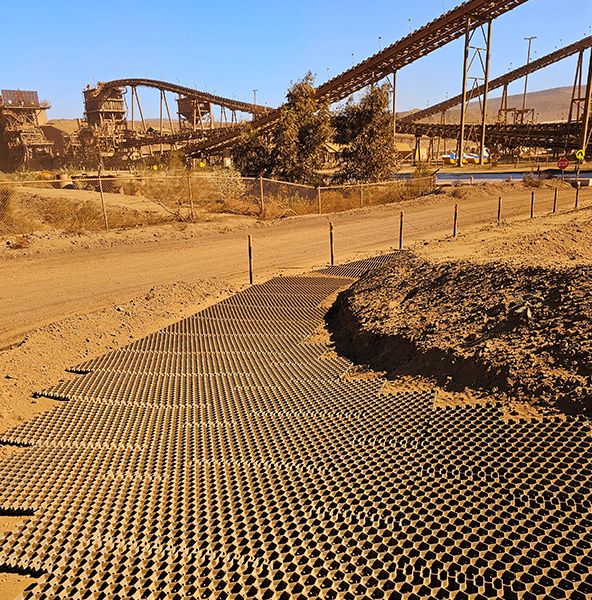 Geohex is a high-performance ground stabilization system designed to reinforce surfaces, distribute loads, control erosion, and improve ground performance across a wide range of applications.